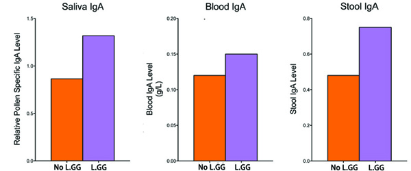 At the same time, antibodies called IgA, which protect people from developing allergy, are stimulated after consuming GG probiotic.